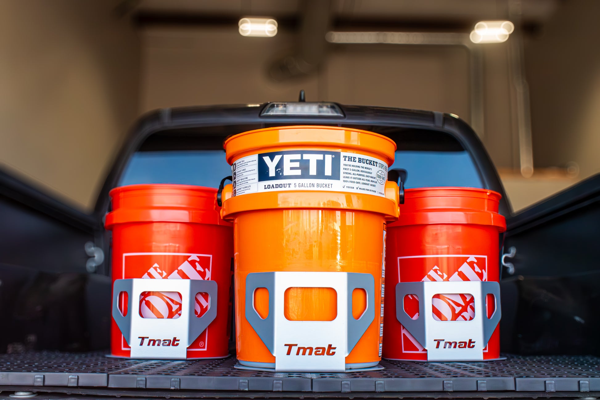 The Tmat Bucket Holder is a heavy-duty, floor-mounted solution designed to securely hold 5-gallon paint and utility buckets. Made in the USA, it can be mounted into the Tmat Cargo System using our tight-fit anchors or installed directly onto your vehicle’s floor for maximum stability.